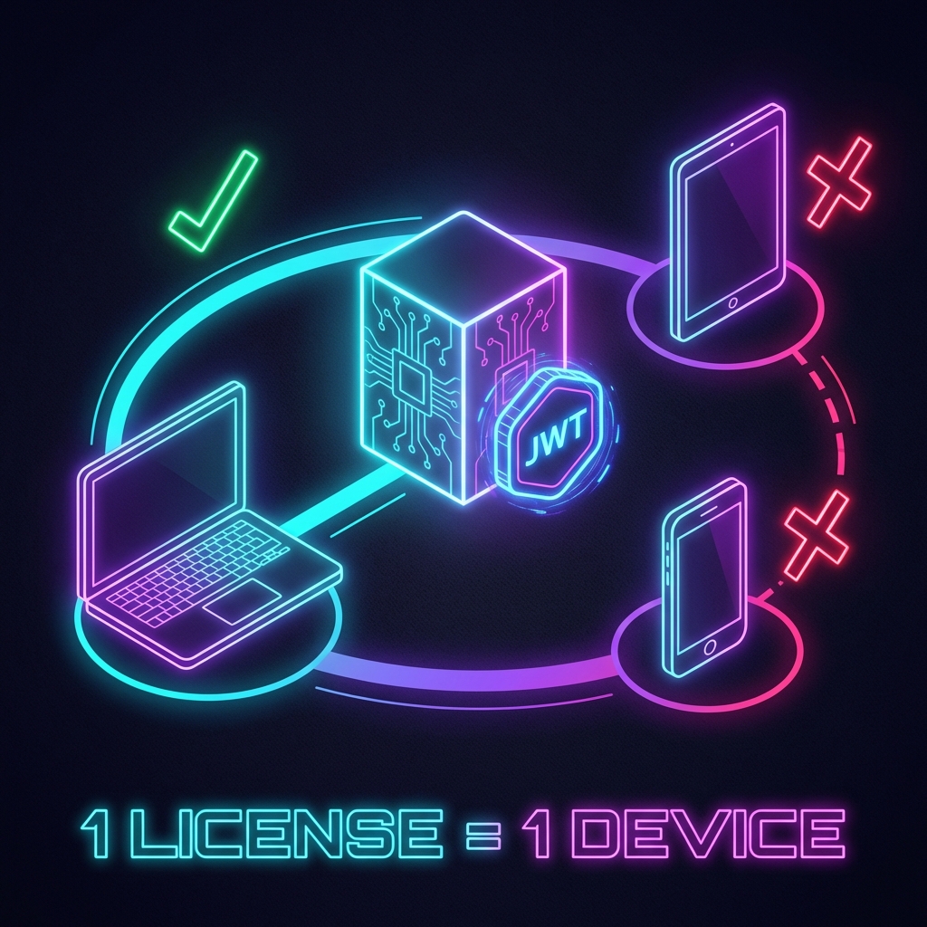 SaaSやライセンス管理が必要なアプリケーションでは、「1つのライセンスで複数のデバイスから同時にログインされたくない」という要件がよくあります。この記事では、JWT(JSON Web Token)を使って、1ライセンスにつき1台のデバイスでのみ実行を許可する仕組みを実装します。